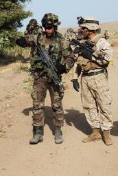 | Keywords: US Navy 110625-M-EK802-058 U.S. and Spanish marines conduct improvised explosive device training.jpg en SIERRA DEL RETIN Spain June 23 2011 Frank Rodriguez left a Spanish marine assigned to Spain's Third Mechanized Landing Battalion points out an improvised explosive device indicator to U S Marine Lance Cpl Jhosue M Escate a squad automatic weapon gunner assigned to Light Armored Reconnaissance Platoon Weapons Company Battalion Landing Team 2nd Battalion 2nd Marine Regiment 22nd Marine Expeditionary Unit during counter improvised explosive device training The training is part of the Spanish Amphibious Bilateral Exercise a 10-day exercise intended to increase interoperability between U S and Spanish marines U S Marine Corps photo by Cpl Dwight Henderson/Released 2011-06-23 110625-M-EK802-058 Navy http //www navy mil/view_image asp id 103488 U S Marine Corps photo by Cpl Dwight Henderson PD-USGov-Military-Navy Images from US Navy location SIERRA DEL RETIN Spain 22nd Marine Expeditionary Unit Spanish Navy Marines June 2011 in Spain M4 carbine with blank-firing adaptor |
