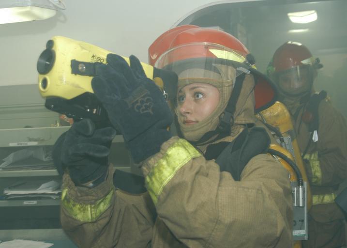 Keywords: US Navy 110630-N-JO245-062 Damage Controlman 3rd Class Courtney Fuller scans a smoke-filled room for hot spots and the source of a simulated fire w.jpg en SOUTH CHINA SEA June 30 2011 Damage Controlman 3rd Class Courtney Fuller from Anchorage Alaska scans a smoke-filled room for hot spots and the source of a simulated fire with a naval firefighters thermal imager NFTI during a flying squad drill aboard the nuclear-powered aircraft carrier USS George Washington CVN 73 George Washington is on patrol in the U S 7th fleet area of responsibility U S Navy photo by Mass Communication Specialist Seaman Justin E Yarborough/Released 2011-06-30 110630-N-JO245-062 Navy http //www navy mil/view_image asp id 103647 U S Navy photo by Mass Communication Specialist Seaman Justin E Yarborough PD-USGov-Military-Navy Aboard USS George Washington CVN-73 Damage Controlman Diffuse smoke Firefighting training in the United States Navy Female firefighters of the United States Females with gloves ISG K-90 Talisman June 2011 Military people in 2011 People of Anchorage Alaska People of the United States in 2011 Sailors from the United States Navy 2011 photographs Women in the United States Navy Women with helmets 30 June |