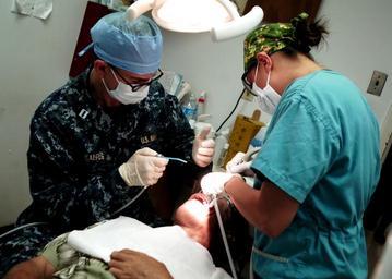 | Keywords: US Navy 110711-F-HJ603-015 Lt. Arthur Kalfus, left, and Hospital Corpsman 3rd Class Celina Sweat perform dental procedures on the President of Micr.jpg en POHNPEI Federated States of Micronesia July 11 2011 Lt Arthur Kalfus left and Hospital Corpsman 3rd Class Celina Sweat perform dental procedures on the President of Micronesia Manny Mori during a medical civic action project at the Pohnpei State Department of Health Services as part of Pacific Partnership 2011 Pacific Partnership is a five-month humanitarian assistance initiative that will make port visits to Tonga Vanuatu Papua New Guinea Timor Leste and the Federated States of Micronesia U S Air Force photo by Airman 1st Class Haleigh Greer/Released 2011-07-11 110711-F-HJ603-015 Navy http //www navy mil/view_image asp id 103994 U S Air Force photo by Airman 1st Class Haleigh Greer PD-USGov-Military-Navy Images from US Navy location POHNPEI Federated States of Micronesia |