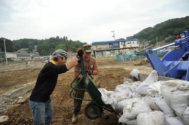 | Keywords: US Navy 110714-N-KK192-128 Construction Electrician 1st Class Joshua Thonissen and a Japanese volunteer load bags of mud into the scoop of a front.jpg en MIYAKO Japan July 14 2011 Construction Electrician 1st Class Joshua Thonissen and a Japanese volunteer load bags of mud into the scoop of a front loader Seabees assigned to Naval Facilities Command Far East Detachment Misawa are working with volunteers in this tsunami-ravaged fishing village to clear sludge and debris from storm drains as part of recovery efforts U S Navy photo by Mass Communication Specialist 1st Class Matthew M Bradley/Released 2011-07-14 110714-N-KK192-128 Navy http //www navy mil/view_image asp id 104079 U S Navy photo by Mass Communication Specialist 1st Class Matthew M Bradley PD-USGov-Military-Navy Images from US Navy location MIYAKO Japan |