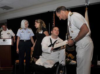 | Keywords: US Navy 110714-N-ZZ999-001 Hospital Corpsman 3rd Class James A. Raffetto and his wife are congratulated by Vice Chief of Naval Operations Adm. Jona.jpg en WASHINGTON July 14 2011 Hospital Corpsman 3rd Class James A Raffetto and his wife are congratulated by Vice Chief of Naval Operations Adm Jonathan W Greenert during the third annual Safe Harbor Awards ceremony Safe Harbor is the Navy's lead organization for coordinating non-medical care of seriously wounded ill and injured Sailors and Coast Guardsmen and their families U S Navy photo by Mass Communication Specialist 3rd Class Matt Dickinson/Released 2011-07-14 110714-N-ZZ999-001 Navy http //www navy mil/view_image asp id 104137 U S Navy photo by Mass Communication Specialist 3rd Class Matt Dickinson PD-USGov-Military-Navy Images from US Navy location Washington DC |