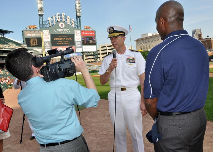Keywords: US Navy 110719-N-VO219-003 Rear Adm. John E. Jolliffe, vice commander of U.S. Naval Forces Central Command, is interviewed behind home plate at Com.jpg en DETROIT July 19 2011 Rear Adm John E Jolliffe vice commander of U S Naval Forces Central Command is interviewed behind home plate at Comerica Park before throwing out the first pitch for a baseball game between the Detroit Tigers and the Oakland Athletics during a Detroit Navy Week 2011 event Detroit Navy Week is one of 21 Navy Weeks this year across the country Navy Weeks are intended to showcase the investment Americans have made in their Navy and increase awareness in cities that do not have a significant Navy presence U S Navy photo by Mass Communication Specialist 1st Class Joseph R Wax/Released 2011-07-19 110719-N-VO219-003 Navy http //www navy mil/view_image asp id 104731 U S Navy photo by Mass Communication Specialist 1st Class Joseph R Wax PD-USGov-Military-Navy Images from US Navy location Detroit Mich Detroit Navy Week |