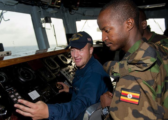 Keywords: US Navy 110725-N-OV802-056 Boatswain's Mate Seaman Mitchel Zeleski instructs Tanzanian navy Capt. A.M. Kihula and Lance Cpl. S.K. Rutungu on the br.jpg en MOMBASA Kenya July 25 2011 Boatswain's Mate Seaman Mitchel Zeleski instructs Tanzanian navy Capt A M Kihula and Lance Cpl S K Rutungu on the bridge of the guided-missile frigate USS Samuel B Roberts FFG 58 as part of Africa Partnership Station APS East APS is an international security cooperation initiative facilitated by Commander U S Naval Forces Europe-Africa aimed at strengthening global maritime partnerships through training and collaborative activities in order to improve maritime safety and security in Africa U S Navy photo by Mass Communication Specialist 2nd Class William Jamieson/Released 2011-07-25 110725-N-OV802-056 Navy http //www navy mil/view_image asp id 104755 U S Navy photo by Mass Communication Specialist 2nd Class William Jamieson Navy people of Tanzania Africa Partnership Station 2011 Aboard USS Samuel B Roberts FFG-58 PD-USGov-Military-Navy |