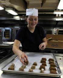| Keywords: US Navy 110725-N-FE409-087 Culinary Specialist Seaman Elizabeth A. Zannone makes gingerbread cookies in the bake shop aboard USS George H.W. Bush (.jpg en ARABIAN SEA July 25 2011 Culinary Specialist Seaman Elizabeth A Zannone makes gingerbread cookies in the bake shop aboard the aircraft carrier USS George H W Bush CVN 77 George H W Bush is deployed to the U S 5th Fleet area of responsibility on its first operational deployment conducting maritime security operations and support missions as part of Operations Enduring Freedom and New Dawn U S Navy photo by Mass Communication Specialist 3rd Class Michael Smevog/Released 2011-07-25 110725-N-FE409-087 Navy http //www navy mil/view_image asp id 104826 U S Navy photo by Mass Communication Specialist 3rd Class Michael Smevog PD-USGov-Military-Navy Aboard USS George H W Bush CVN-77 Gingerbread cookies |