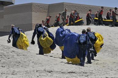 | Keywords: US Navy 110728-N-GG400-158 The Leap Frogs, leave their drop zone after a training jump at Naval Amphibious Base Coronado as Basic Underwater Demoli.jpg en SAN DIEGO July 28 2011 Members of the U S Navy parachute team the Leap Frogs leave their drop zone after a training jump at Naval Amphibious Base Coronado as Basic Underwater Demolition/SEAL BUD/S Class 290 prepares for inflatable boat small IBS training The Leap Frogs perform aerial parachute demonstrations across the United States in support of Naval Special Warfare and Navy Recruiting U S Navy photo by Seaman Jumar T Balacy/Released 2011-07-28 110728-N-GG400-158 Navy http //www navy mil/view_image asp id 105014 U S Navy photo by Seaman Jumar T Balacy PD-USGov-Military-Navy Naval Amphibious Base Coronado United States Navy Parachute Team Basic Underwater Demolitions/SEAL |