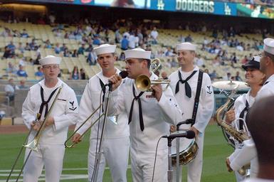 | Keywords: US Navy 110730-N-OB313-134 Musician 2nd Class Jason Hanna and the Navy Band Southwest, Blue Jackets Brass Band, performs at Los Angeles Dodger Stad.jpg en LOS ANGELES July 30 2011 Musician 2nd Class Jason Hanna trumpet player and vocalist and the Navy Band Southwest Blue Jackets Brass Band performs at Los Angeles Dodger Stadium during Los Angeles Navy Week 2011 one of 21 Navy Weeks being held this year across the country Navy Weeks are intended to showcase the investment Americans have made in their Navy and increase awareness in cities that do not have a significant Navy presence U S Navy photo by Mass Communication Specialist 2nd Class T J Ortega/Released 2011-07-30 110730-N-OB313-134 Navy http //www navy mil/view_image asp id 105129 U S Navy photo by Mass Communication Specialist 2nd Class T J Ortega PD-USGov-Military-Navy Images from US Navy location Los Angeles People with trumpets Navy Band Southwest Los Angeles Navy Week |
