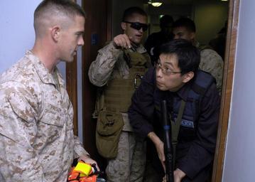 | Keywords: US Navy 110822-N-UU879-071 Capt. Brett Presley, assigned to Fleet Anti-terrorism Security Team Pacific, provides instruction to Singapore police co.jpg en SINGAPORE Aug 22 2011 Capt Brett Presley assigned to Fleet Anti-terrorism Security Team Pacific provides instruction to Singapore police coast guard Staff Sgt Roger Koh during a visit board search and seizure exercise as part of Cooperation Afloat Readiness and Training CARAT Singapore 2011 CARAT is a series of bilateral exercises held annually in Southeast Asia to strengthen relationships and enhance force readiness U S Navy photo by Mass Communication Specialist 1st Class Matthew Olay/Released 2011-08-22 110822-N-UU879-071 Navy http //www navy mil/view_image asp id 106347 U S Navy photo by Mass Communication Specialist 1st Class Matthew Olay PD-USGov-Military-Navy United States Navy images from Singapore Fleet Antiterrorism Security Team Police of Singapore |