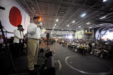 | Keywords: US Navy 110827-N-IS680-030 Lt. Cmdr. Dave Hecht welcomes families and friends as USS George Washington (CVN 73) commences its friends and family da.jpg en YOKOSUKA Japan Aug 27 2011 Lt Cmdr Dave Hecht public affairs officer aboard the aircraft carrier USS George Washington CVN 73 welcomes families and friends as the ship commences its friends and family day cruise into Tokyo Bay The cruise allowed Sailors' families and friends to get a first-hand look at what life for their Sailor is like at sea U S Navy photo by Mass Communication Specialist Seaman Alysia R Hernandez/Released 2011-08-27 110827-N-IS680-030 Navy http //www navy mil/view_image asp id 106490 U S Navy photo by Mass Communication Specialist Seaman Alysia R Hernandez PD-USGov-Military-Navy Aboard USS George Washington CVN-73 |