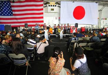 | Keywords: US Navy 110827-N-MH885-119 Friends and family members of Sailors aboard the aircraft carrier USS George Washington (CVN 73) watch Hawaiian dancers.jpg en TOKYO BAY Aug 27 2011 Friends and family members of Sailors aboard the aircraft carrier USS George Washington CVN 73 watch Hawaiian dancers in the ship's hangar bay during a friends and family day cruise The cruise allowed Sailors' families and friends to get a first-hand look at what life for their Sailor is like at sea U S Navy photo by Mass Communication 3rd Class Stephanie Smith/Released 2011-08-27 110827-N-MH885-119 Navy http //www navy mil/view_image asp id 106450 U S Navy photo by Mass Communication 3rd Class Stephanie Smith PD-USGov-Military-Navy Aboard USS George Washington CVN-73 |