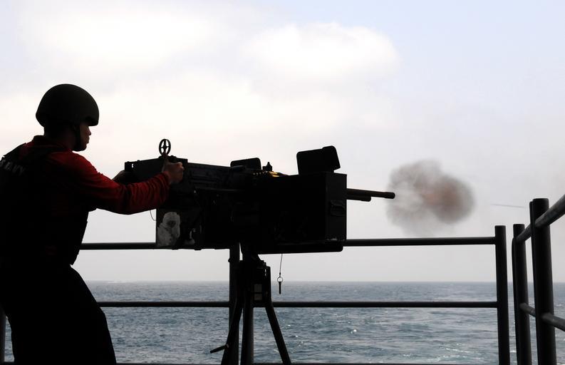Keywords: US Navy 110919-N-QJ471-503 Aviation Ordnanceman 3rd Class Gianfranco Francisco fires a .50-caliber machine gun during a live-fire exercise on the f.jpg en ARABIAN SEA Sept 19 2011 Aviation Ordnanceman 3rd Class Gianfranco Francisco fires a 50-caliber machine gun during a live-fire exercise on the fantail aboard the aircraft carrier USS George H W Bush CVN 77 George H W Bush is deployed to the U S 5th Fleet area of responsibility on its first operational deployment conducting maritime security operations and support missions as part of Operations Enduring Freedom and New Dawn U S Navy photo by Mass Communication Specialist 3rd Class Billy Ho/Released 2011-09-19 110919-N-QJ471-503 Navy http //www navy mil/view_image asp id 107500 U S Navy photo by Mass Communication Specialist 3rd Class Billy Ho PD-USGov-Military-Navy Aboard USS George H W Bush CVN-77 |
