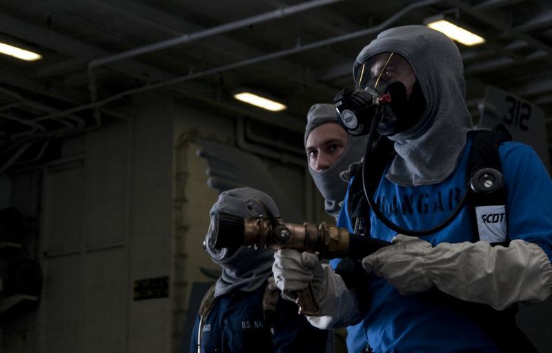 | Keywords: US Navy 110927-N-JN664-004 Airman Eliza Ortega mans a hose during a simulated fire drill in the hanger bay aboard the Nimitz-class aircraft carrier.jpg en PACIFIC OCEAN Sept 27 2011 Airman Eliza Ortega mans a hose during a simulated fire drill in the hanger bay aboard the Nimitz-class aircraft carrier USS Abraham Lincoln CVN 72 Abraham Lincoln is underway conducting a composite training unit exercise U S Navy photo by Mass Communication Specialist Seaman Apprentice Karolina A Martinez/Released 2011-09-27 110927-N-JN664-004 Navy http //www navy mil/view_image asp id 107981 U S Navy photo by Mass Communication Specialist Seaman Apprentice Karolina A Martinez PD-USGov-Military-Navy Aboard USS Abraham Lincoln CVN-72 |