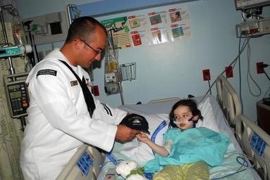 | Keywords: US Navy 110927-N-AU127-629 Aviation Electrician's Mate 2nd Class Anthony Barnardo, assigned to USS Constitution, gives a Navy ball cap to a patient.jpg en SPRINGFIELD Mass Sept 27 2011 Aviation Electrician's Mate 2nd Class Anthony Barnardo assigned to USS Constitution gives a Navy ball cap to a patient of Baystate Medical Center during a Caps for Kids event as part of New England Navy Week one of 21 Navy weeks planned across America for 2011 Navy weeks are intended to show the investment Americans have made in their Navy and increase awareness in cities that do not have a significant Navy presence U S Navy photo by Mass Communication Specialist Seaman Shannon Heavin/Released 2011-09-27 110927-N-AU127-629 Navy http //www navy mil/view_image asp id 108054 U S Navy photo by Mass Communication Specialist Seaman Shannon Heavin PD-USGov-Military-Navy Images from US Navy location SPRINGFIELD Mass New England Navy Week |