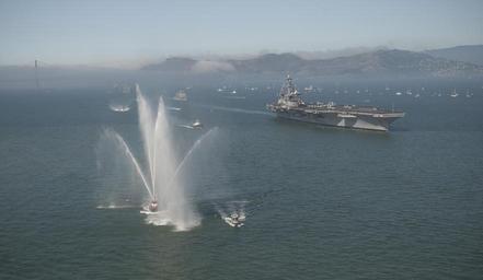 | Keywords: US Navy 111008-N-TZ605-848 The Nimitz-class carrier USS Carl Vinson (CVN 70) leads a parade of ships during San Francisco Fleet Week 2011.jpg en SAN FRANCISCO Oct 8 2011 The Nimitz-class carrier USS Carl Vinson CVN 70 leads a parade of ships during San Francisco Fleet Week 2011 The five-day event which highlights the equipment technology and operational capabilities of the military's sea services and their history in the San Francisco area U S Navy photo by Mass Communication Specialist 3rd Class Timothy A Hazel/Released 2011-10-08 111008-N-TZ605-848 Navy http //www navy mil/view_image asp id 108504 U S Navy photo by Mass Communication Specialist 3rd Class Timothy A Hazel PD-USGov-Military-Navy Aboard USS Carl Vinson CVN-70 |
