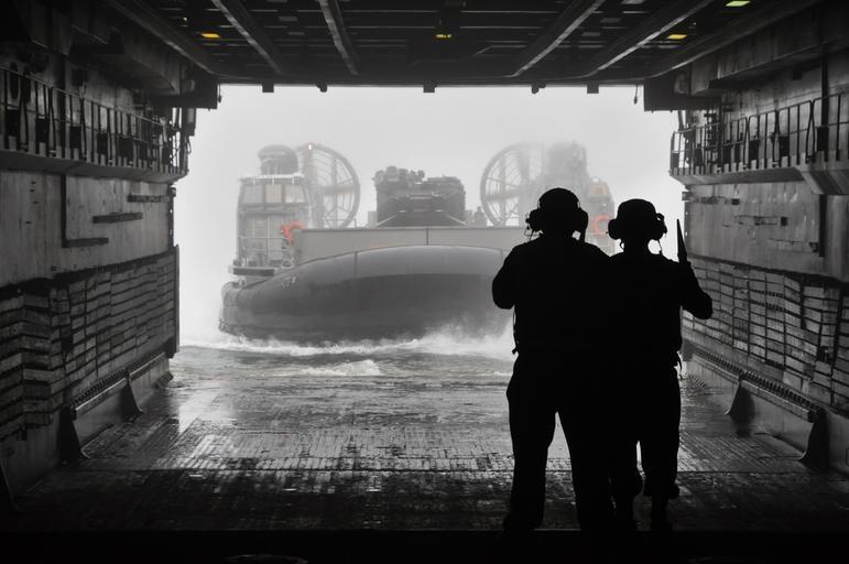Keywords: US Navy 111011-N-YX169-150 Chief Boatswain's Mate Oliver Simon, left, and Boatswain's Mate 3rd Class James Thompson direct a landing craft air cush.jpg en ATLANTIC OCEAN Oct 11 2011 Chief Boatswain's Mate Oliver Simon left and Boatswain's Mate 3rd Class James Thompson direct a landing craft air cushion LCAC as it approaches the well deck of the amphibious transport dock ship USS Ponce LPD 15 Ponce will begin a decommissioning process after a nearly 41-year career following a series of training operations and final port calls over the next two months U S Navy photo by Mass Communication Specialist 1st Class Nathanael Miller/Released 2011-10-11 111011-N-YX169-150 Navy http //www navy mil/view_image asp id 108812 U S Navy photo by Mass Communication Specialist 1st Class Nathanael Miller PD-USGov-Military-Navy Aboard USS Ponce LPD-15 Landing Craft Air Cushion Well decks |