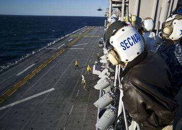 | Keywords: US Navy 111015-N-AC887-001 Secretary of the Navy (SECNAV) the Honorable Ray Mabus observes as an F-35B Lightning II takes off from the amphibious a.jpg en ATLANTIC OCEAN Oct 15 2011 Secretary of the Navy SECNAV the Honorable Ray Mabus observes as an F-35B Lightning II takes off from the amphibious assault ship USS Wasp LHA 1 Mabus and Commandant of the Marine Corps Gen James F Amos embarked aboard Wasp to get a first-hand look at the Marine Corps variant of the Joint Strike Fighter during sea trials U S Navy photo by Chief Mass Communication Specialist Sam Shavers/Released 2011-10-15 111015-N-AC887-001 Navy http //www navy mil/view_image asp id 108955 U S Navy photo by Chief Mass Communication Specialist Sam Shavers PD-USGov-Military-Navy Aboard USS Wasp LHD-1 F-35B Lightning II landings |