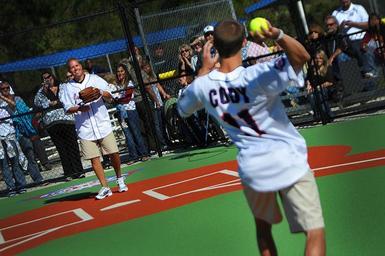 | Keywords: US Navy 111022-N-YR391-054 Senior Chief Missile Technician Jeff Norris catches the first pitch from his son at the Miracle Field grand opening in C.jpg en CAMDEN COUNTY Ga Oct 22 2011 Senior Chief Missile Technician Jeff Norris catches the first pitch from his son at the Miracle Field grand opening in Camden County Ga Miracle Field is a specialized baseball field that will serve children with disabilities in Camden County and the surrounding areas U S Navy photo by Mass Communication Specialist 2nd Class Gary Granger Jr /Released 2011-10-22 111022-N-YR391-054 Navy http //www navy mil/view_image asp id 109468 U S Navy photo by Mass Communication Specialist 2nd Class Gary Granger Jr PD-USGov-Military-Navy Images from US Navy location CAMDEN COUNTY Ga |