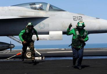 | Keywords: US Navy 111024-N-OY799-214 Aviation Boatswain's Mate (Equipment) 3rd Class Gabriel Garcia and Aviation Boatswain's Mate (Equipment) 3rd Class Luong.jpg en ARABIAN SEA Oct 24 2011 Aviation Boatswain's Mate Equipment 3rd Class Gabriel Garcia and Aviation Boatswain's Mate Equipment 3rd Class Luong Susan signal a clear flight deck aboard the Nimitz-class aircraft carrier USS John C Stennis CVN 74 John C Stennis is deployed to the U S 5th Fleet area of responsibility conducting maritime security operations and support missions as part of Operations Enduring Freedom and New Dawn U S Navy photo by Mass Communication Specialist 3rd Class Kenneth Abbate/Released 2011-10-24 111024-N-OY799-214 Navy http //www navy mil/view_image asp id 109443 U S Navy photo by Mass Communication Specialist 3rd Class Kenneth Abbate PD-USGov-Military-Navy Aboard USS John C Stennis CVN-74 |