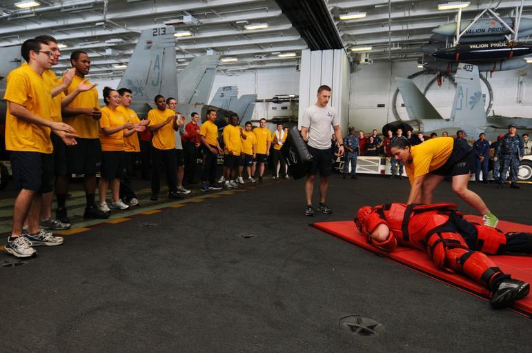 | Keywords: US Navy 111026-N-JD217-059 Operations Specialist 2nd Class Kariyma T. Thomas subdues a threat after being sprayed with oleoresin capsicum (OC) duri.jpg en ARABIAN GULF Oct 26 2011 Operations Specialist 2nd Class Kariyma T Thomas subdues a threat after being sprayed with oleoresin capsicum OC during a security training exercise aboard the aircraft carrier USS George H W Bush CVN 77 George H W Bush is deployed to the U S 5th Fleet area of responsibility on its first operational deployment conducting maritime security operations and support missions as part of Operations Enduring Freedom and New Dawn U S Navy photo by Mass Communication Specialist Seaman Jessica Echerri/Released 2011-10-26 111026-N-JD217-059 Navy http //www navy mil/view_image asp id 109539 U S Navy photo by Mass Communication Specialist Seaman Jessica Echerri PD-USGov-Military-Navy Aboard USS George H W Bush CVN-77 |