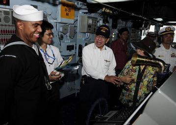 | Keywords: US Navy 111112-N-WJ771-080 Seaman Christopher M. Edmonson describes navigational equipment to members of the Japan Maritime Self-Defense Force on t.jpg en WHITE BEACH NAVAL FACILITY Okinawa Nov 12 2011 Seaman Christopher M Edmonson describes navigational equipment to members of the Japan Maritime Self-Defense Force on the bridge of the forward-deployed amphibious dock landing ship USS Germantown LSD 42 during a tour Germantown was open to the public Nov 12-13 as part of the White Beach Festival a two-day open-base event sponsored by Commander Fleet Activities Okinawa U S Navy photo by Mass Communication Specialist 2nd Class Casey H Kyhl/Released 2011-11-12 111112-N-WJ771-080 Navy http //www navy mil/view_image asp id 110398 U S Navy photo by Mass Communication Specialist 2nd Class Casey H Kyhl PD-USGov-Military-Navy Aboard USS Germantown LSD-42 |