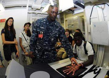 | Keywords: US Navy 111117-N-BK435-010 Hospital Corpsman 2nd Class Andre Cooper demonstrates to the students from Guam High School's Health Team Dynamic's clas.jpg en POLARIS POINT Guam Oct 17 2011 Hospital Corpsman 2nd Class Andre Cooper assigned to the submarine tender USS Frank Cable AS 40 demonstrates to the students from Guam High School's Health Team Dynamic's class how to take a hand x-ray Frank Cable conducts maintenance and support of submarines and surface vessels deployed in the U S 7th Fleet area of responsibility U S Navy photo by Mass Communication Specialist 2nd Class Jeremy Starr/Released 2011-10-17 111117-N-BK435-010 Navy http //www navy mil/view_image asp id 110546 U S Navy photo by Mass Communication Specialist 2nd Class Jeremy Starr PD-USGov-Military-Navy Aboard USS Frank Cable AS-40 |