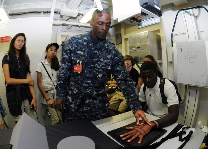 Keywords: US Navy 111117-N-BK435-010 Hospital Corpsman 2nd Class Andre Cooper demonstrates to the students from Guam High School's Health Team Dynamic's clas.jpg en POLARIS POINT Guam Oct 17 2011 Hospital Corpsman 2nd Class Andre Cooper assigned to the submarine tender USS Frank Cable AS 40 demonstrates to the students from Guam High School's Health Team Dynamic's class how to take a hand x-ray Frank Cable conducts maintenance and support of submarines and surface vessels deployed in the U S 7th Fleet area of responsibility U S Navy photo by Mass Communication Specialist 2nd Class Jeremy Starr/Released 2011-10-17 111117-N-BK435-010 Navy http //www navy mil/view_image asp id 110546 U S Navy photo by Mass Communication Specialist 2nd Class Jeremy Starr PD-USGov-Military-Navy Aboard USS Frank Cable AS-40 |