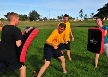 | Keywords: US Navy 111202-N-BE353-007 Logistics Specialist 2nd Class Graham Pridham, assigned to the submarine tender USS Frank Cable (AS 40), uses a baton to.jpg en SANTA RITA Guam Dec 02 2011 Logistics Specialist 2nd Class Graham Pridham assigned to the submarine tender USS Frank Cable AS 40 uses a baton to fight off Engineman 3rd Class Rex Hartung and Machinist's Mate Fireman Sherrell Evans during an oleoresin capsicum spray qualification course Frank Cable conducts maintenance and support of submarines and surface vessels deployed in the U S 7th Fleet area of responsibility U S Navy photo by Mass Communication Specialist 1st Class Ricardo Danan/Released 2011-12-02 111202-N-BE353-007 Navy http //www navy mil/view_image asp id 111428 U S Navy photo by Mass Communication Specialist 1st Class Ricardo Danan PD-USGov-Military-Navy USS Frank Cable AS-40 |