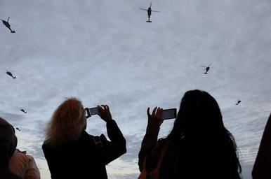 | Keywords: US Navy 111210-N-QO773-022 Family members of Sailors take photos.jpg en NORFOLK Dec 10 2011 Family members of Sailors take photos of MH-60S Sea Hawks assigned to Helicopter Sea Combat Squadron HSC 9 as they fly in formation over Naval Station Norfolk during a homecoming ceremony for the squadron HSC-9 completed its first combat deployment embarked aboard the aircraft carrier USS George H W Bush CVN 77 in support of Operations Enduring Freedom and New Dawn U S Navy photo by Mass Communication Specialist 2nd Class Rex Nelson/Released 2011-12-10 111210-N-QO773-022 Navy http //www navy mil/view_image asp id 112038 U S Navy photo by Mass Communication Specialist 2nd Class Rex Nelson PD-USGov-Military-Navy Aboard USS George H W Bush CVN-77 People with cameras |