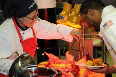 | Keywords: US Navy 111225-N-FU443-038 Culinary Specialist 1st Class Susan Graham serves ham to Culinary Specialist 1st Class Carrol Williams during a Christma.jpg en NORFOLK Dec 25 2011 Culinary Specialist 1st Class Susan Graham serves ham to Culinary Specialist 1st Class Carrol Williams during a Christmas dinner held aboard the aircraft carrier USS George H W Bush CVN 77 for the ship's crew and family members U S Navy photo by Mass Communication Specialist 2nd Class Timothy Walter/Released 2011-12-25 111225-N-FU443-038 Navy http //www navy mil/view_image asp id 112757 U S Navy photo by Mass Communication Specialist 2nd Class Timothy Walter PD-USGov-Military-Navy Aboard USS George H W Bush CVN-77 |
