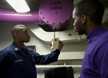 | Keywords: US Navy 120117-N-DR144-049 A Sailor uses a heat stress monitor to measure temperature.jpg en ARABIAN SEA Jan 17 2012 Hospital Corpsman 2nd Class Travis Stephens assigned to Medical Department's preventative medicine office uses an RSS-220 heat stress monitor to measure temperature and humidity while conducting a heat stress survey aboard the Nimitz-class aircraft carrier USS Carl Vinson CVN 70 Carl Vinson and Carrier Air Wing CVW 17 are deployed to the U S 5th Fleet area of responsibility U S Navy photo by Mass Communication Specialist 2nd Class James R Evans/Released 2012-01-17 120117-N-DR144-049 Navy http //www navy mil/view_image asp id 113610 U S Navy photo by Mass Communication Specialist 2nd Class James R Evans PD-USGov-Military-Navy Aboard USS Carl Vinson CVN-70 |