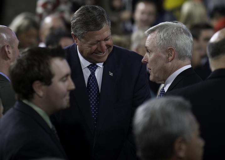 Keywords: US Navy 120126-N-AC887-001 Secretary of the Navy (SECNAV) the Honorable Ray Mabus, right, shares a laugh with Secretary of the Air Force Michael D.jpg en AURORA Col Jan 26 2012 Secretary of the Navy SECNAV the Honorable Ray Mabus right shares a laugh with Secretary of the Air Force Michael Donley at Buckley Air Force Base Mabus and Donley were on hand to hear President Barack Obama deliver remarks on the administration's energy initiatives including the Department of the Navy's plan to obtain one gigawatt of power from renewable sources U S Navy photo by Chief Mass Communication Specialist Sam Shavers/Released 2012-01-26 120126-N-AC887-001 Navy http //www navy mil/view_image asp id 114163 U S Navy photo by Chief Mass Communication Specialist Sam Shavers PD-USGov-Military-Navy Buckley Air Force Base Michael B Donley Ray Mabus |