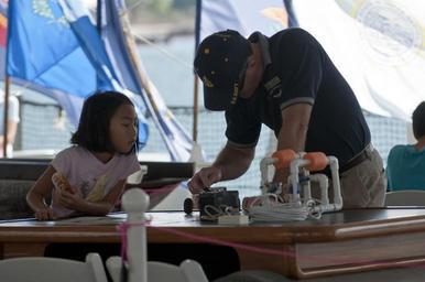 | Keywords: US Navy 120128-N-XD424-008 Dan Parsons, the educational director of the Battleship Missouri, shows an attendant of the ship's anniversary celebrati.jpg en PEARL HARBOR Jan 28 2012 Dan Parsons the educational director of the Battleship Missouri shows an attendant of the ship's anniversary celebration one of the educational performances on the fantail of the ship The Missouri celebrated the 68th anniversary of its launch and the 13th anniversary of its open as a memorial U S Navy photo by Mass Communication Specialist 3rd Class Dustin W Sisco/Released 2012-01-28 120128-N-XD424-008 Navy http //www navy mil/view_image asp id 114323 U S Navy photo by Mass Communication Specialist 3rd Class Dustin W Sisco PD-USGov-Military-Navy Battleship Missouri Memorial |