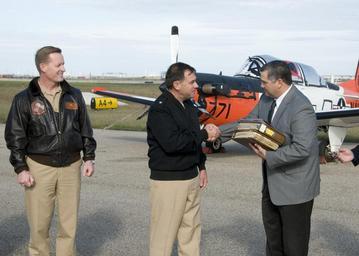 | Keywords: US Navy 120206-N-LY958-166 Navy representatives presents Dr. Mark Escamilla, president of Del Mar College, with maintenance logs for two T-34 Turbo.jpg en CORPUS CHRISTI Texas Feb 6 2012 Capt Scott Cooledge commodore of Training Air Wing 2 watches as Rear Adm William Sizemore Chief of Naval Air Training and Dr Mark Escamilla president of Del Mar College shake hands after transferring maintenance logs for two T-34 Turbo Mentor training aircraft during a ceremony at Corpus Christi International Airport U S Navy Photo By Richard Stewart/Released 2012-02-06 120206-N-LY958-166 Navy http //www navy mil/view_image asp id 115111 U S Navy Photo By Richard Stewart PD-USGov-Military-Navy Naval Air Station Corpus Christi |