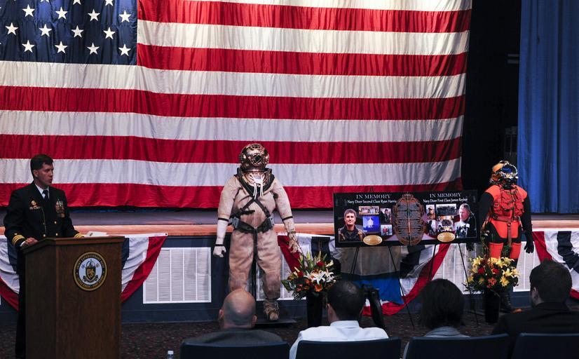 | Keywords: US Navy 130314-N-LW591-020 Cmdr. Michael Runkle, commanding officer of Mobile Diving and Salvage Unit (MDSU) 2, delivers remarks during a memorial service.jpg en VIRGINIA BEACH Va March 14 2013 Cmdr Michael Runkle commanding officer of Mobile Diving and Salvage Unit MDSU 2 delivers remarks during a memorial service at Joint Expeditionary Base Little Creek-Fort Story for Navy Diver 1st Class James Reyher and Navy Diver 2nd Class Ryan Harris from MDSU-2 who died Feb 26 MDSU-2 is an expeditionary mobile diving unit homeported at Joint Expeditionary Base Little Creek-Ft Story in Virginia Beach Va and has successfully conducted salvage operations to support TWA Flight 800 Swiss Air Flight 111 the space shuttles Challenger and Colombia and the Civil War ironclad USS Monitor U S Navy photo by Mass Communication Specialist 2rd Class Steven C Hoskins/Released 130314-N-LW591-020 Navy http //www navy mil/view_image asp id 145244 U S Navy photo by Mass Communication Specialist 2rd Class Steven C Hoskins 2013-03-14 PD-USGov-Military-Navy Harris surname Ryan Harris Images from US Navy location Virginia Beach Va Joint Expeditionary Base Little Creek-Fort Story March 2013 in the United States Memorial services Men facing right and looking right Military people in 2013 Military people with a flag of the United States Naval officers of the United States Runkle Michael People at a lectern People of the United States in 2013 Pictures by Mass Communication Specialists Reyher surname James Reyher Runkle surname Michael Runkle Standing men Taken with Nikon D3x 2013 in Virginia Photographs taken on 2013-03-14 21st-century men of the United States Underwater diving equipment United States Navy Divers United States Navy Mobile Diving and Salvage Unit Two |