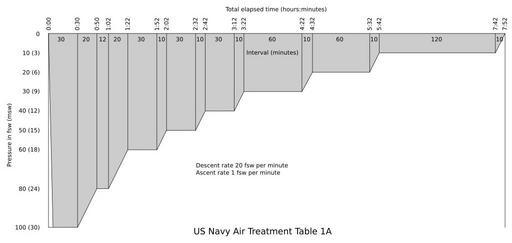 Keywords: US Navy Air Treatment Table 1A.svg en Graphic representation of US Navy Air Treatment Table 1A 2015-11-12 own Pbsouthwood other versions cc-zero Decompression tables Uploaded with UploadWizard