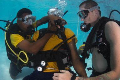 | Keywords: US Navy divers and Belizean Coast Guard divers practice SCUBA emergency procedures in a pool 140624-N-IP743-345.jpg en Navy Diver 2nd Class Bob LeFrance from Mobile Diving and Salvage Unit Two MDSU 2 Company 2-1 watches as Belize Coast Guard divers practice emergency procedures during a Southern Partnership Station 2014 training dive The MDSU 2 divers are working together with their Belizean Coast Guard counterparts as part of Southern Partnership Station 2014 Southern Partnership Station 2014 is a U S Navy deployment focused on subject matter expert exchanges with partner nation militaries and security forces in Central and South America and the Caribbean U S military teams work with partner nation forces during naval-focused training exercises military-to-military engagements and community relations projects in an effort to enhance partnerships with regional maritime activities and improve the operational readiness of participants U S Navy photo by Mass Communication Specialist 1st Class Brett Cote/Released 2014-06-24 Petty Officer 1st Class Brett Cote https //www dvidshub net/image/1420093 140624-N-IP743-345 2014-06-25 21 22 BELIZE CITY BZ 3 PD-USGov-Military-Navy United States Navy Mobile Diving and Salvage Unit Two Southern Partnership Station 2014 Images from DoD uploaded by Fæ |