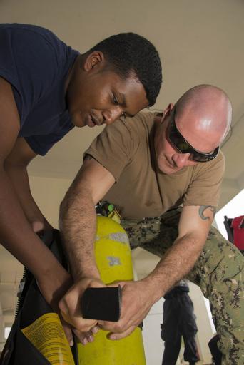 | Keywords: US Navy divers and Belizean Coast Guard divers work together during Southern Partnership Station '14 140611-N-IP743-143.jpg en Navy Diver 1st Class Jose Arbelaez of Mobile Diving and Salvage Unit Two MDSU 2 Company 2-1 and Petty Officer 2nd Class Abraham Hinds of the Belize Coast Guard Service attach a buoyancy compensator to a SCUBA tank The MDSU 2 divers are working together with their Belizean Coast Guard counterparts as part of Southern Partnership Station 2014 Southern Partnership Station 2014 is a U S Navy deployment focused on subject matter expert exchanges with partner nation militaries and security forces in Central and South America and the Caribbean U S military teams work with partner nation forces during naval-focused training exercises military-to-military engagements and community relations projects in an effort to enhance partnerships with regional maritime activities and improve the operational readiness of participants U S Navy photo by Mass Communication Specialist 1st Class Brett Cote/Released 2014-06-11 Petty Officer 1st Class Brett Cote https //www dvidshub net/image/1394652 140611-N-IP743-143 2014-06-12 21 20 BELIZE CITY BZ 3 PD-USGov-Military-Navy United States Navy Mobile Diving and Salvage Unit Two Southern Partnership Station 2014 Images from DoD uploaded by Fæ |