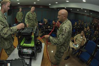| Keywords: US Navy divers discuss their underwater robot with Colombian divers as part of Southern Partnership Station '14 140819-N-IP743-190.jpg en U S Navy divers assigned to Mobile Diving and Salvage Unit Two MDSU 2 Company 2-1 discuss their underwater robot with Colombian divers from the Departamento de Buceo y Salvamento The MDSU 2 divers are in Colombia working with the Armada de la Republica de Colombia as part of Southern Partnership Station 2014 Southern Partnership Station 2014 is a U S Navy deployment focused on subject matter expert exchanges with partner nation militaries and security forces in Central and South America and the Caribbean U S military teams work with partner nation forces during naval-focused training exercises military-to-military engagements and community relations projects in an effort to enhance partnerships with regional maritime activities and improve the operational readiness of participants U S Navy photo by Mass Communication Specialist 1st Class Brett Cote/Released 2014-08-19 Petty Officer 1st Class Brett Cote https //www dvidshub net/image/1516585 140819-N-IP743-190 2014-08-21 17 45 CARTAGENA CO PD-USGov-Military-Navy United States Navy Mobile Diving and Salvage Unit Two Southern Partnership Station 2014 Images from DoD uploaded by Fæ |