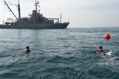 | Keywords: US Navy divers with USNS Safeguard (T-ARS-50) over USS Houston (CA-30) in June 2014.JPG en U S Navy Chief Warrant Officer 2 Jason Schafer left and Mass Communication Specialist Christopher Perez assigned to Mobile Diving Salvage Unit MDSU 1 dive on the site of the sunken heavy cruiser USS Houston CA-30 from the Military Sealift Command rescue and salvage ship USNS Safeguard T-ARS-50 at Banten Bay Java Indonesia Safeguard its embarked MDSU and Indonesian Navy divers were conducting a diving exercise on the wreck of the Houston as part of Cooperation Afloat Readiness and Training CARAT 2014 2014-06-12 140612-N-NT265-083 Navy http //www navy mil/view_image asp id 177541 U S Navy photo by Mass Communication Specialist 3rd Class Christian Senyk 5 48 45 S 106 7 55 E PD-USGov-Military-Navy USNS Safeguard T-ARS-50 United States Navy Divers USS Houston CA-30 |