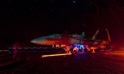 Keywords: us navy sailors military jet plane aircraft fighter deck ship carrier night evening lights lighting sky stars reflections outside beautiful