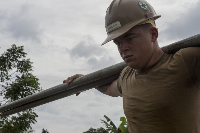 Keywords: US Navy Seabees and US Air Force RED HORSE engineers build a school in Papua New Guinea during Pacific Partnership 150703-N-UQ938-046.jpg en ARAWA Autonomous Region of Bougainville Papua New Guinea July 3 2015 U S Navy Steelworker 2nd Class Matthew Gullion-Foster of Davenport Iowa carries pipes for scaffolding at Tupukas Primary School A team of U S Navy Seabees U S Air Force RED HORSE engineers and Australian Regular Army engineers constructed a new building at the site as part of Pacific Partnership 2015 The hospital ship USNS Mercy T-AH 19 is currently in Papua New Guinea for its second mission port of PP15 Pacific Partnership is in its 10th iteration and is the largest annual multilateral humanitarian assistance and disaster relief preparedness mission conducted in the Indo-Asia-Pacific region While training for crisis conditions Pacific Partnership missions to date have provided real world medical care to approximately 270 000 patients and veterinary services to more than 38 000 animals Critical infrastructure development has been supported in host nations during more than 180 engineering projects U S Navy photo by Mass Communication Specialist 1st Class Trevor Andersen/RELEASED 2015-07-03 Petty Officer 1st Class trevor andersen https //www dvidshub net/image/2060786 150703-N-UQ938-046 2015-07-14 12 50 ARAWA PG PD-USGov-Military-Navy USNS Mercy T-AH-19 Pacific Partnership 2015 United States Navy Seabees Images from DoD uploaded by Fæ