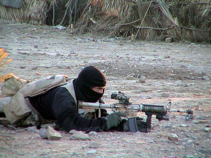 Keywords: US Navy SEAL team member in Afghanistan 2002.jpg en In January 2002 a member of a U S Navy SEAL team provides cover for his teammates while advancing on a suspected location of al-Qaeda and Taliban forces in eastern Afghanistan 2002-01-24 United States Navy United States Navy PD-USGov-Military-Navy January 2002 photographs 24 January Advanced Combat Optical Gunsight on M4 carbine Balaclavas CamelBak Desert Camouflage Uniform in 2002 January 2002 in Afghanistan Military people in 2002 Prone M4 carbine with foregrip Male soldiers Males in masks Males with M4 carbine United States Navy SEALs United States Special Operations Forces in the War in Afghanistan 2001-present |