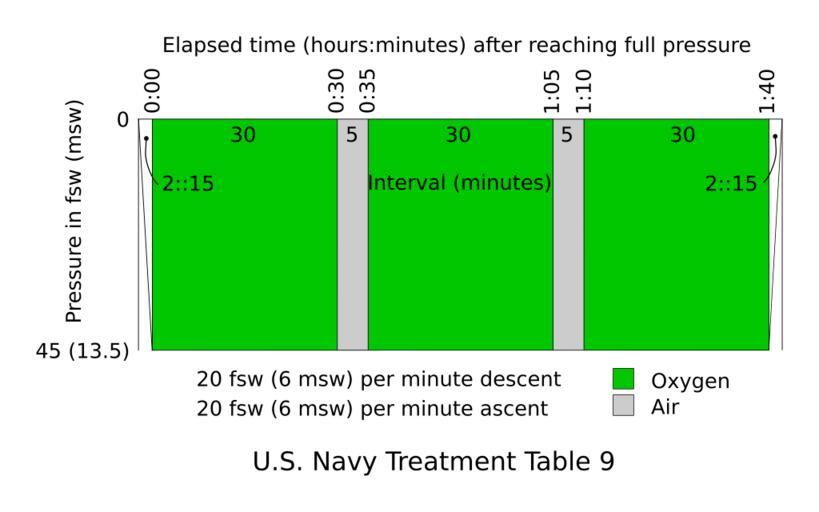 Keywords: US Navy Table 9.svg en Graphic representation of US Navy Treatment Table 9 2015-11-09 own Pbsouthwood other versions cc-zero Decompression tables Uploaded with UploadWizard