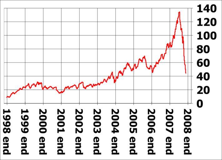 Keywords: US oil price in dollars from 1999 to 2008 November 21.svg en US oil price from 1999 to 2008 November 21; weekly prices in United States dollars per barrel on the vertical scale with year markers on the horizontal scale I 84user created this work using the excel file pet_pri_wco_k_w xls from the U S Energy Information Administration's web page http //tonto eia doe gov/dnav/pet/pet_pri_wco_k_w htm direct link http //tonto eia doe gov/dnav/pet/xls/pet_pri_wco_k_w xls and using Open Source Gnumeric 1 9 1 to produce the chart 2008-12-03 84user talk None See Licensing below See also thumb left US oil price in dollars from 1999 to 2008-10-17 thumb center US oil price from 1998 to 2008-10-31 thumb left World oil price from 1998 to 2008-11-21 thumb center World oil price in dollars from 1978 to 2008-10-17 log scale thumb tall left World oil price from 1998 to 2008 October thumb center NYMEX Light Sweet Crude Oil daily prices from 2005 to 2008-12-02 in US dollars clr SVG economics Oil prices |