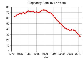 | Keywords: US Pregnancy Rate 15-17 Years.svg translate yes en Pregnancy rate per 1000 15-17 years old in the United States Data from http //www guttmacher org/pubs/USTPtrends10 pdf Table 2 2 pg 11 2015-01-23 own Delphi234 other versions Generated with Wikimedia SVG Chart SVG Chart/box cc-zero Human pregnancy |