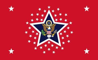 | Keywords: US Presidential Flag Army 1898.svg The Army's presidential flag from 1898 The Navy already had a presidential flag but the design was very close to the Army's infantry flag so they chose a completely different design The Army defined both a flag and a color; the color was the same design but smaller made of silk and had a fringe of silver and gold The flag was technically replaced with the Navy version in 1901 but the use of the color continued along with the other flag design until they were both replaced by a new flag designed during President Wilson's term in 1916 The flag was designed by Frederick D Owen a civilian working in the War Department The regulation which officially defined the flag was General Orders No 13 issued on March 28 1898 It read http //www tioh hqda pentagon mil/SealsEmblems/PresidentOfTheUnitedStates htm <blockquote> 212a The flag of the President shall be of scarlet bunting measuring 13 feet fly and 8 feet hoist having a hem on the hoist 3 inches wide and provided with an eyelet at each end for hoisting and lowering In each of the four corners shall be a five-pointed white star with one point upward The points of these stars lie in the circumference of an imaginary circle of 5 inches radius The centers of these imaginary circles which coincide with the centers of these stars are 18 inches from the short sides and 14 inches from the long sides of the flag In the center of the flag shall be a large fifth star also of five points which lie in the circumference of an imaginary circle of 2 feet 9 inches radius The center of this circle is the point of intersection of the diagonals of the flag The re-entering angles of this large star lie in the circumference of an imaginary circle of 16 inches radius with the same center as before Inside of the star thus outlined is a parallel star separated from it by a band of white 3 inches wide This inner star forms a blue field upon which is the official coat of arms of the United States as determined by the State Department the device being located by placing the middle point of the line dividing the chief from the paleways of the escutcheon upon the point of intersection of the diagonals of the flag and thus coinciding with the center of the large center star On the scarlet field around the large star are other white stars one for each State equally scattered in the re-entering angles and all included within the circumference of a circle of 3 feet 3 inches radius whose center is the center of the large star </blockquote> The color was defined the same way <blockquote> 214b Of scarlet silk 6 feet 6 inches fly and 4 feet on the pike which shall be 10 feet long including ferrule and head The head shall consist of a globe 3 inches in diameter surmounted by an American eagle alert 4 inches high In each of the four corners shall be a five pointed white star The points of these stars lie in the circumference of an imaginary circle of 2 ½ inches radius The centers of these imaginary circles which coincide with the centers of these stars are 9 inches from the short sides and 7 inches from the long sides of the color In the center of the color shall be a large fifth star also of five points which lie in the circumference of an imaginary circle of 16 ½ inches radius The center of this circle is the point of intersection of the diagonals of the color The re-entering angles of this large star lie in the circumference of an imaginary circle of 8 inches radius with the same center as before Inside of the star thus outlined is a parallel star separated from it by a band of white 1 ½ inches wide This inner star forms a blue field upon which is the official coat of arms of the United States as determined by the State Department the device being located by placing the middle point of the line dividing the chief from the paleways of the escutcheon upon the point of intersection of the diagonals of the color and thus coinciding with the center of the large center star On the scarlet field around the large star are other white stars one for each State equally scattered in the re-entering angles and all included within the circumference of a circle of 19 ½ inches radius whose center is the center of the large star The design letters figures and stars are to be embroidered in silk the same on both sides of the colors The edges of the color are to be trimmed with knotted fringe of silver and gold 3 inches wide and one cord having two tassels 8 feet 6 inches long and made of red white and blue silk intermixed </blockquote> Self-made following the precise dimensions from the original specifications SVG Great Seal taken from File US-OfficeOfManagementAndBudget-Seal svg a U S Government work and slightly altered and colorized to match version of actual flag seen in File Army Presidential Flag QMMuseum jpg 1898 U S Government <gallery> File Army Presidential Flag QMMuseum jpg Photo of 1908 version of the color with 46 stars File US Presidential Flag Navy 1899 svg Navy presidential flag File US Presidential Color Army 1912 svg Updated design from 1912 </gallery> PD-USGov Flag of the President of the United States 8 Personal flags of the United States Army SVG flags - military of the United States SVG flags - historical of the United States Blue green red white yellow flags E Pluribus Unum Flags with arrows Flags with banners Flags with branches Flags with one blue star Flags with eagles Flags with more than twenty stars Flags with mottos Flags with white five-pointed stars Five-pointed stars |