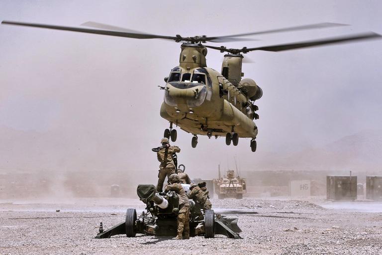 Keywords: Soldiers hook-up M777A2 howitzer Afghanistan CH-47 Chinook helicopter