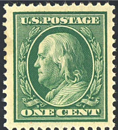 Keywords: US stamp 1908 1c Franklin.jpg 1-cent 1908-09 series United States postage stamp perforated 12 with double-line watermark depicting Benjamin Franklin U S Post Office 2006-08-16 U S Bureau of Engraving and Printing PD-USGov 1908 stamps Stamps of the United States 1901-1910 1908 01c Benjamin Franklin on stamps Green stamps Definitive stamps of the United States |