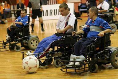 | Keywords: US v FR 2007 FIPFA WC.jpg en US versus France in final of 2007 FIPFA World Cup Tokyo Japan USA vs Francia Coppa del mondo FIFPA Tokyo Own Majmule Association football at the Paralympics People in wheelchairs Motorized wheelchairs Wheelchair sports |