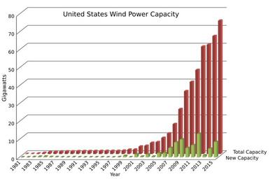 | Keywords: US wind power capacity.svg translate yes en Bar graph of installed wind power in the United States from 1981 to 2014 Data from 1981 to 1998 from http //awea org/projects/ AWEA archived at http //web archive org/web/20081006091136/http //awea org/projects/ Data from 1999 to 2013 from http //awea files cms-plus com/images/AWEA_AnnualReport_2013-Figure1 png AWEA U S Wind Industry Annual Market Report Year Ending 2013 2014-12-04 own Delphi234 other versions cc-zero Uploaded with UploadWizard Wind energy statistics of the United States |