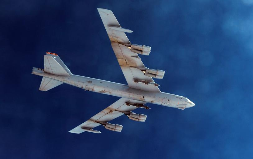 MAKE A MEME View Large Image USAF B-52 underside.jpg en A U S Air Force aircrew assigned to the 23rd Bomb Squadron from Minot Air Force Base N D flies an Air Force B-52 Stratofortress bomber aircraft on an eight-hour sortie going over bomb dropping sequences and air ...